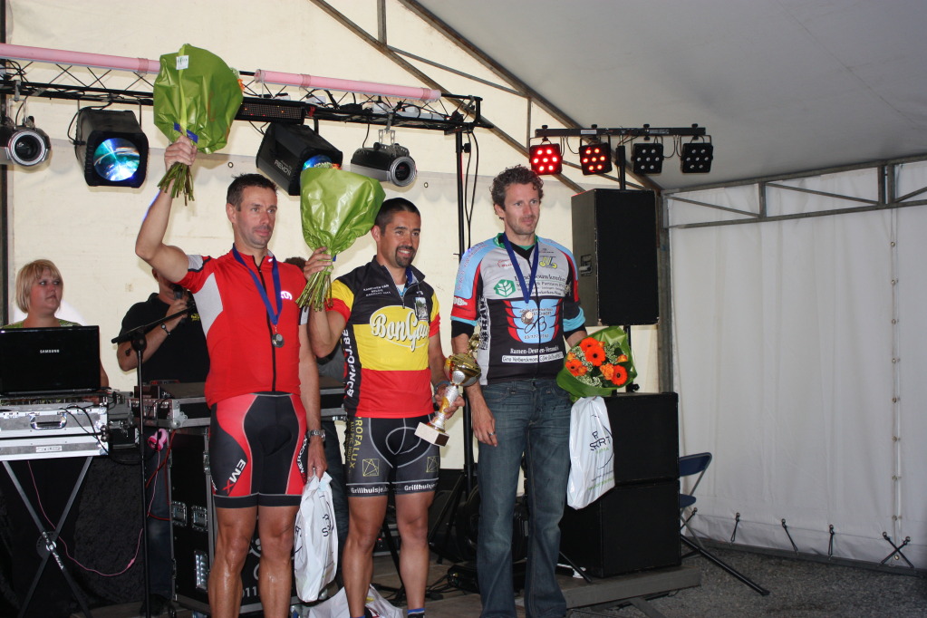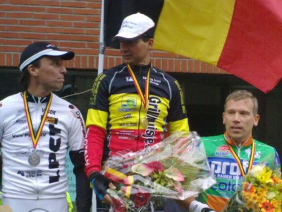 Vandaag werd onze Bart Kampioen van Belgie bij de waod cat. B, hij won weliswaar de wedstrijd A&B's en dit is een knappe manier om de driekleur te verdienen. Ploegmaat Nico Savat werd knap 2e en zo was het podium mooi gevuld. Franky van Oyen was een waardig tegenstander en werd knap 3e, mooier podium kon men niet wensen! Chapeau aan de 3 heren.